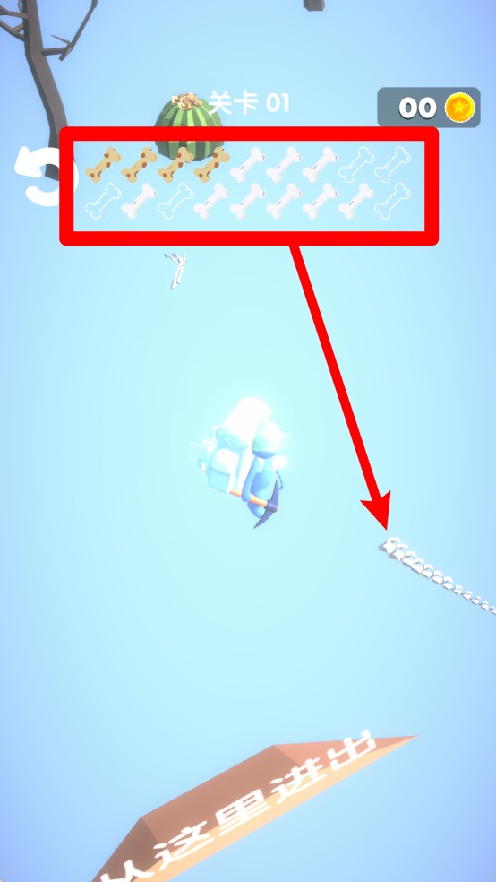2.骨骼收集进度:画面上方显示当前关卡所需骨头数量,玩家需在场景中逐一收集完整,才能顺利通关。