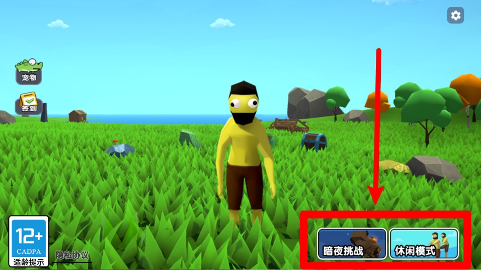 1.模式选择界面:游戏提供暗夜挑战与休闲模式两种玩法,玩家可依据喜好自由切换不同的冒险节奏。
