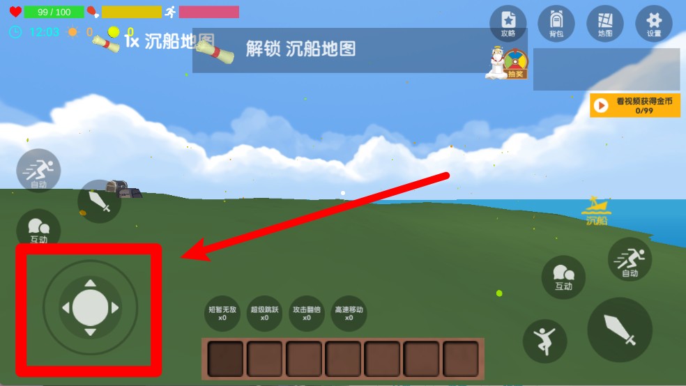2.基础移动操作:使用左下角的虚拟方向摇杆进行角色移动,探索沉船地图并解锁资源点,操作直观上手快。