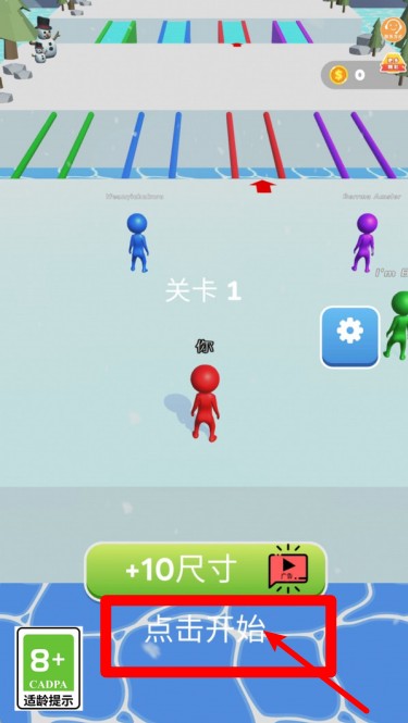 1.点击底部“点击开始”按钮即可进入关卡,部分按钮可观看广告获得额外奖励如雪球初始尺寸加成。