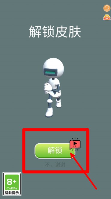 3.完成比赛后可选择解锁新皮肤,通过点击“解锁”按钮并观看广告,即可获得全新角色造型使用。