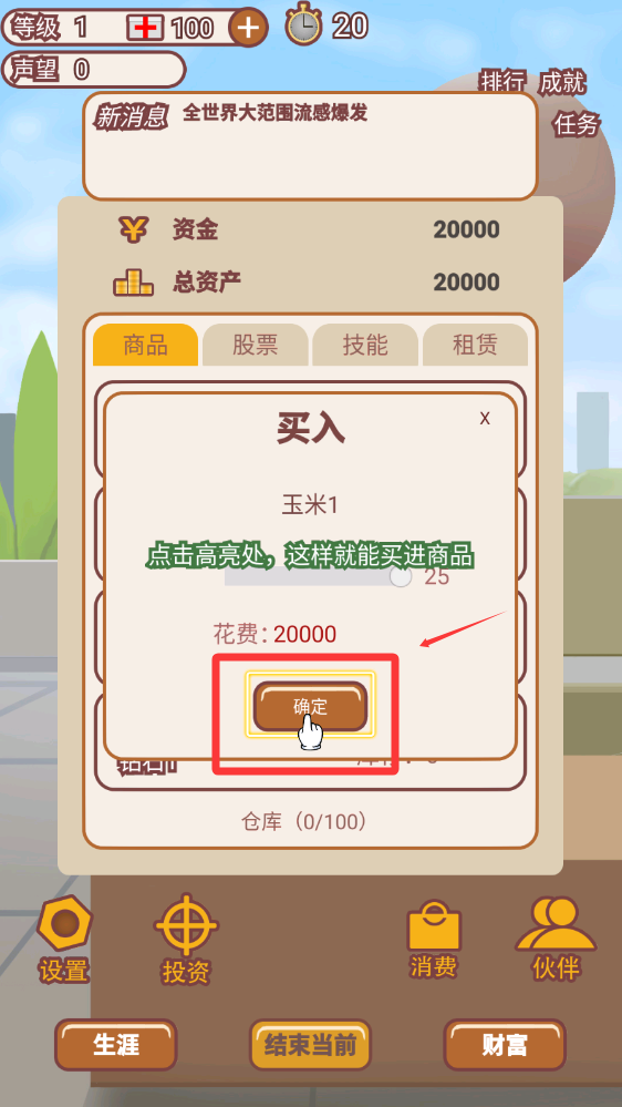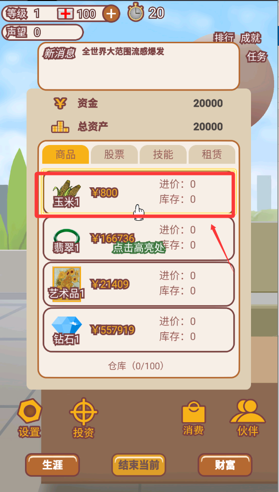 1、基础操作用点击和拖拽即可完成,通过市场调研发现商机,低价囤货高价抛售,连续正确判断可获得"商业奇才"加成buff。