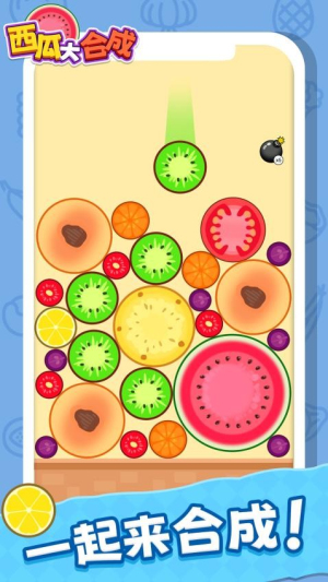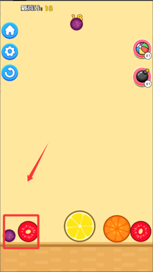 1、开始游戏后先熟悉合成规则,把相同种类的水果拖到相邻位置进行合并。尽量将高分数水果放在中间区域,方便后续合成更大果实。