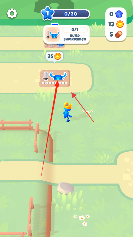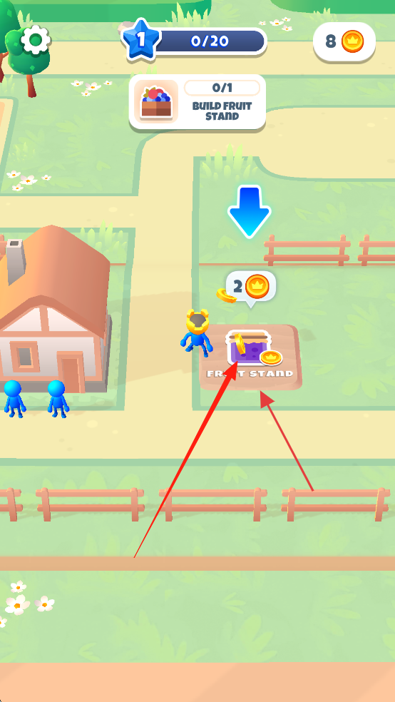 1、“建造设施”,消耗金币,点击建造水果摊、剑士营地等建筑,拓展小镇功能。
