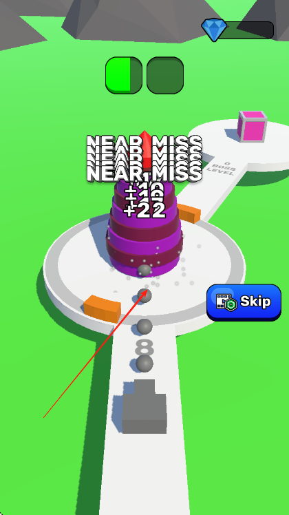 2、射击过程中注意躲避两侧的障碍物,确保发射的子弹准确击中方块塔,避免因击中障碍物而导致闯关失败。