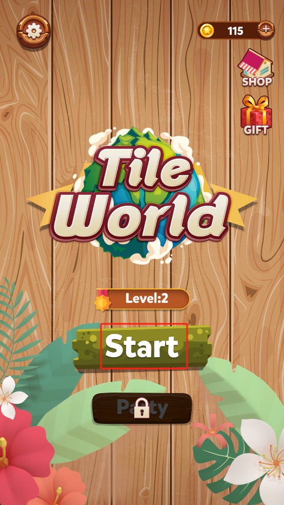 2、在关卡中观察瓷砖分布,点击相邻的同色瓷砖完成消除,像3块蓝色瓷砖连成一线即可消除,完成指定消除数量。