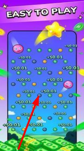 1、进入关卡后调整弹射角度与力度,发射弹珠撞击棋盘上的彩色方块,触发连锁消除效果。