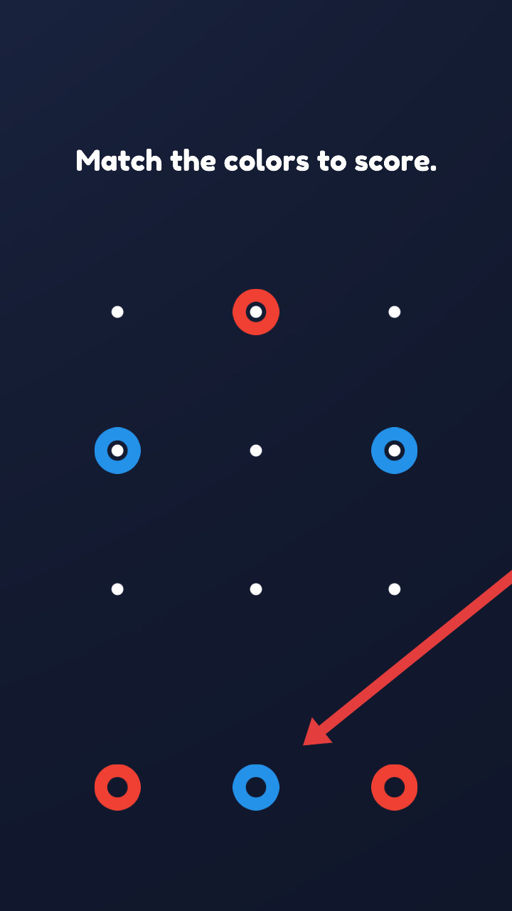 2、游戏内遵循【Match the colors to score】规则,观察红蓝圆环分布,规划匹配路径,同色相连可得分。