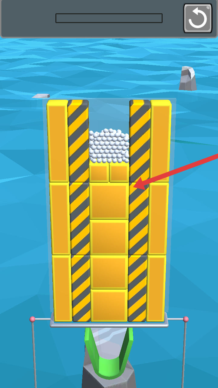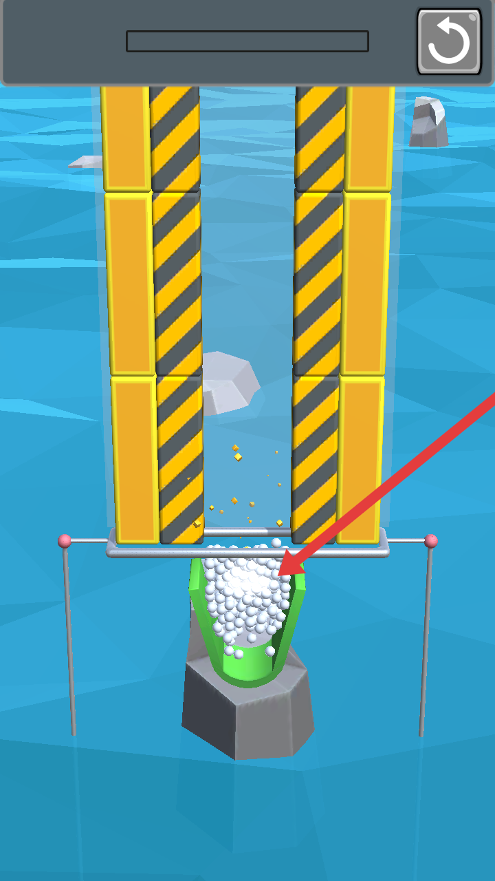 2、避黑引导入桶:引导下落时需避开黑色区域,防止其掉入深海,控制方块消除节奏与位置,确保足够多的小球进入桶中,避免因错误操作失去钢珠,影响关卡完成。