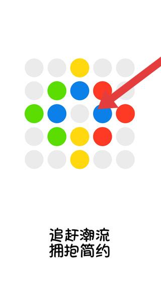 1、游戏初始界面呈现彩色圆点矩阵,呼应“追赶潮流拥抱简约”理念,点击对应颜色圆点,开启色彩匹配的消除玩法。