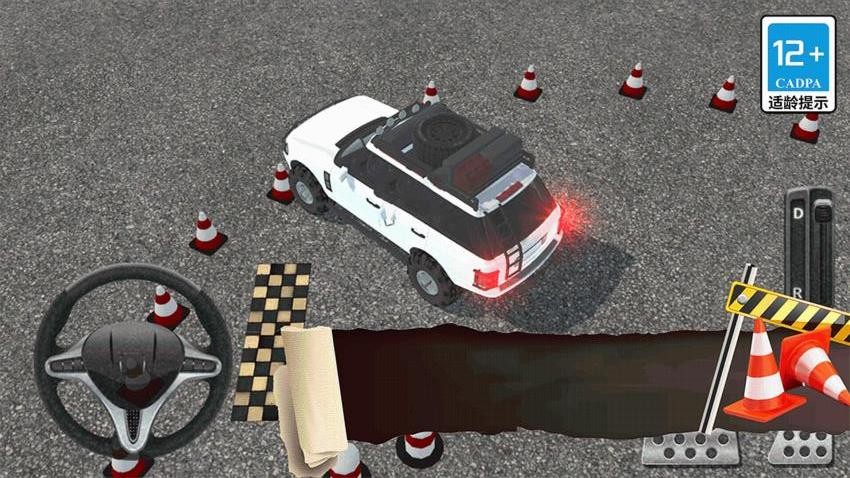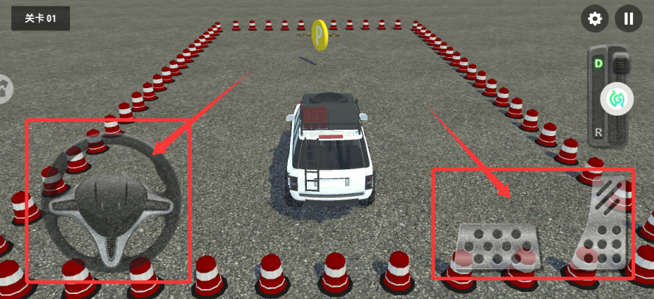 3、使用左下角虚拟方向盘调整行驶方向,配合右侧踏板控制油门和刹车完成精准驾驶。