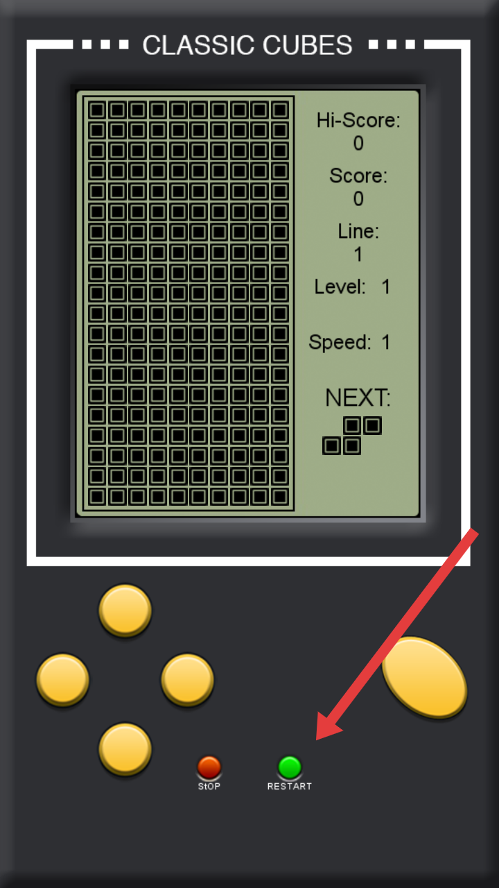 2、若游戏失败或想重新挑战,点击界面下方绿色【RESTART】按钮,重置游戏数据并开启新局。