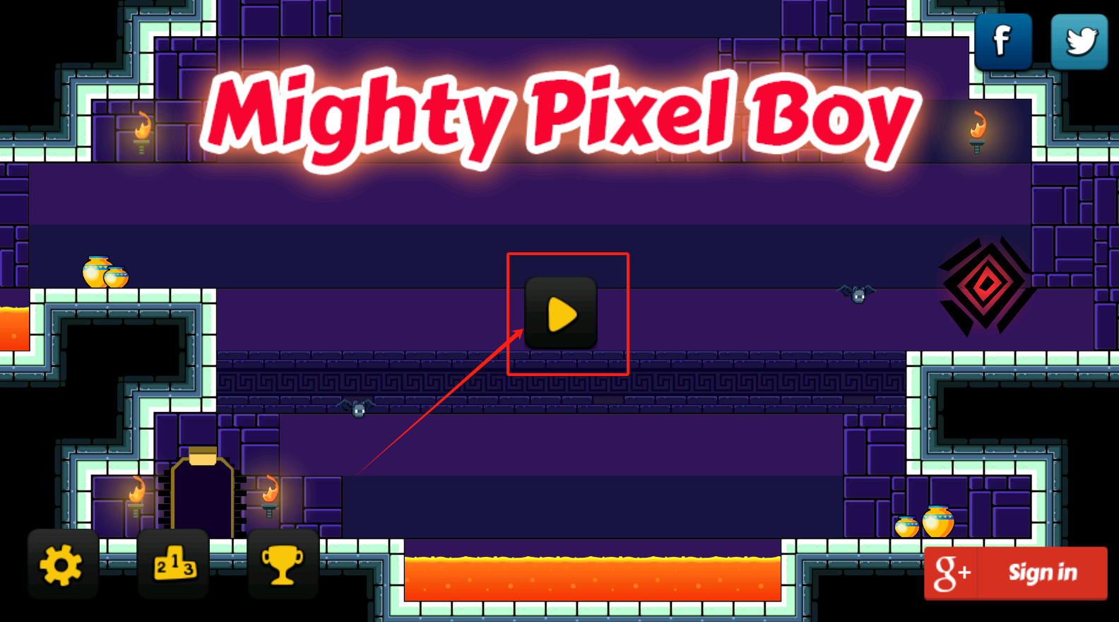 1、点击红框里的黑方块开始游戏,左下角可以选择关卡,开启你的像素世界闯关之旅。
