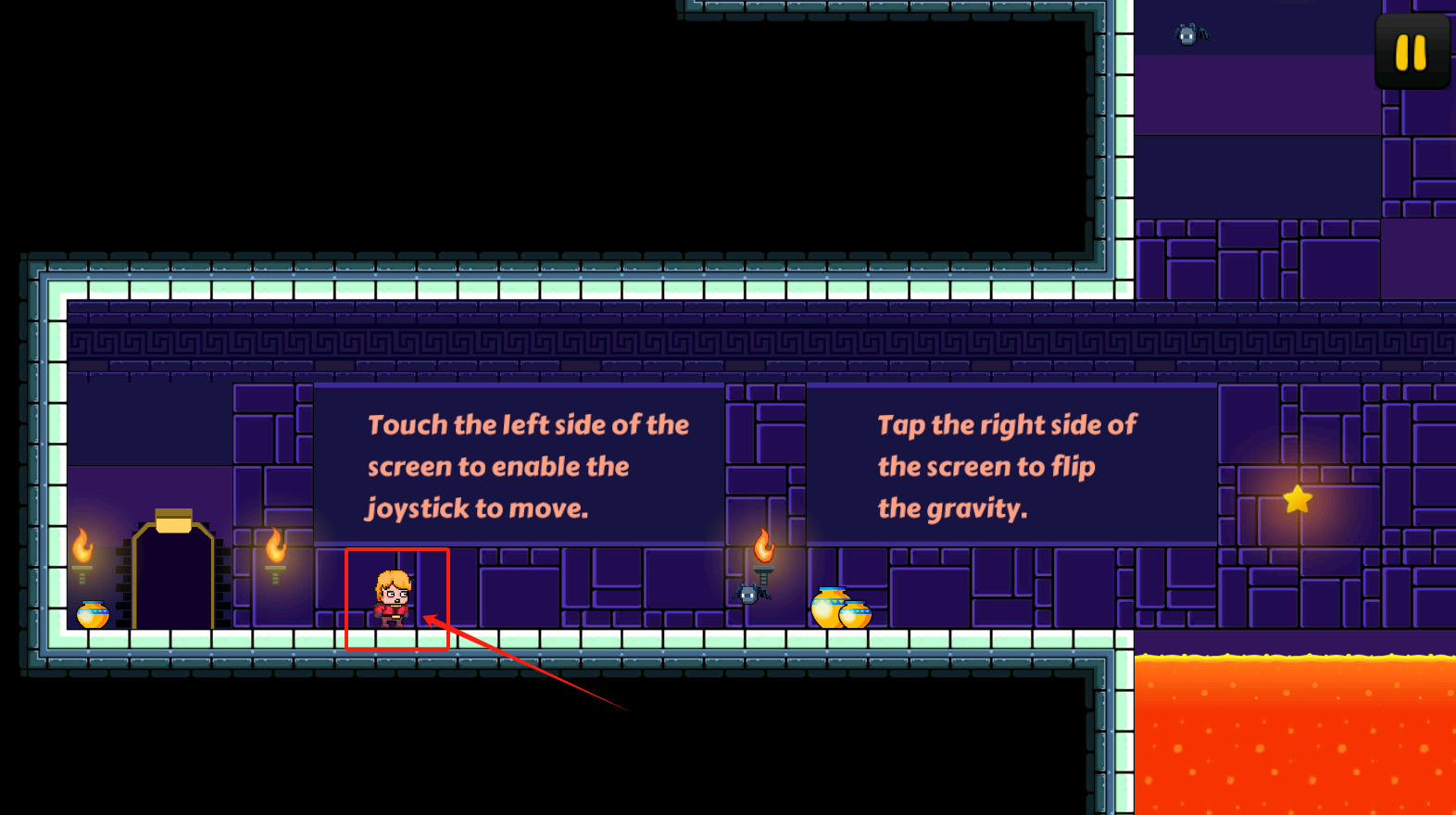 3、在游戏过程中,左边屏幕滑动控制角色移动,右边点击一下能反转重力,同时要注意收集星星和宝箱,它们对后续发展有重要作用。