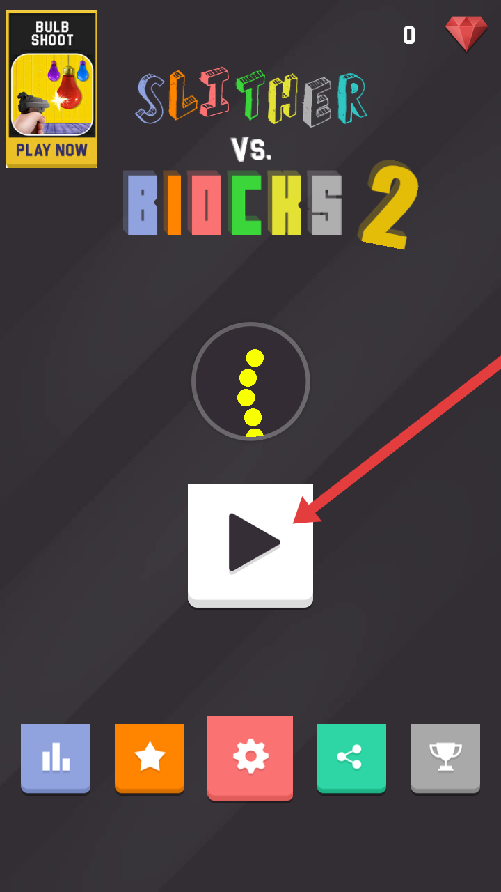 1、进入贪吃蛇打砖块2的游戏主界面,需要点击中间白色带三角的播放按钮,开启游戏挑战。
