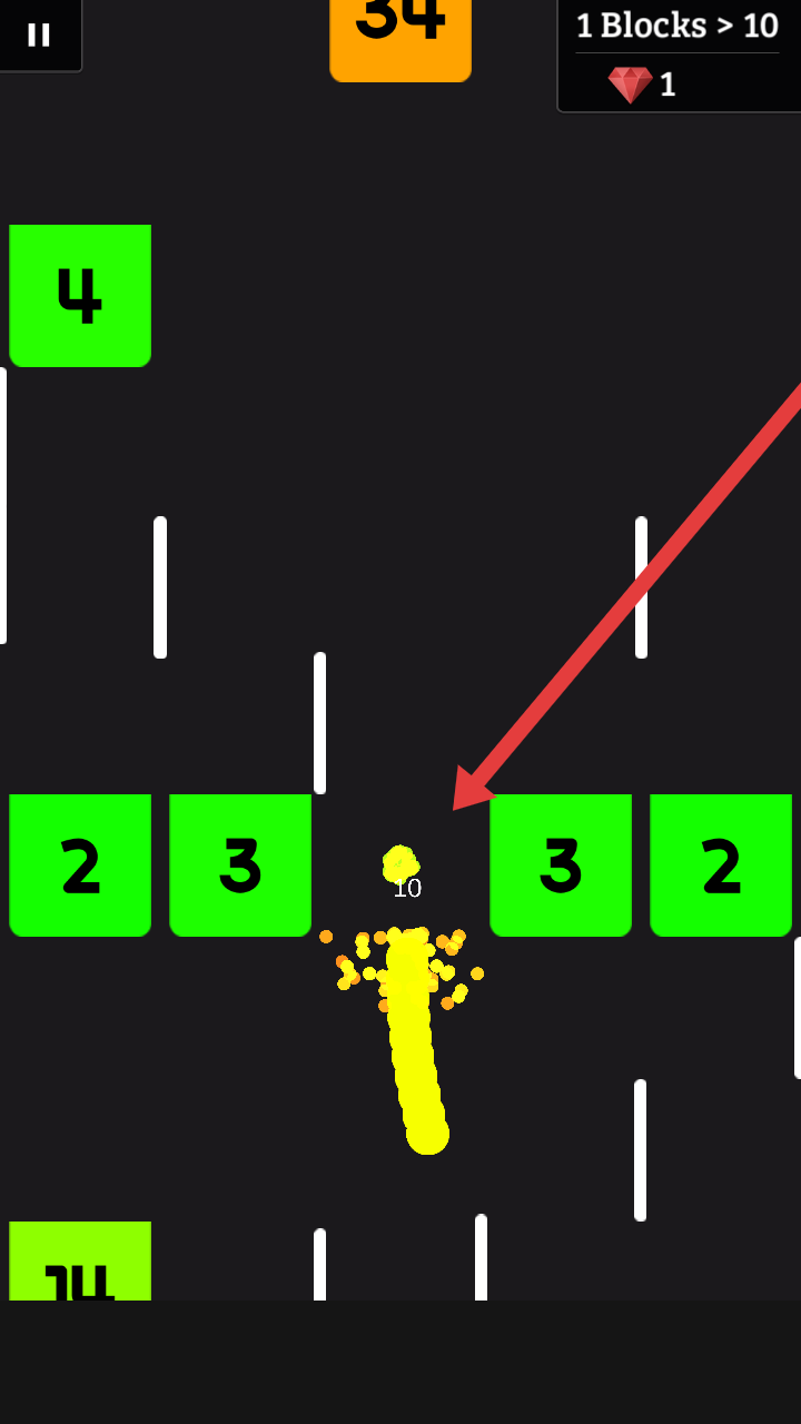 2、需要操控黄色蛇形小球,沿轨道移动,瞄准带数字的方块,借助弹射机制精准撞击,消耗方块数值。