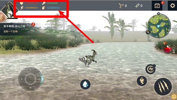 1.状态条功能说明:左上角显示体力、饥饿与能量数值,随时关注状态变化,有助于更好地管理生存节奏。