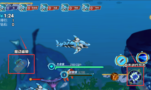 1、核心玩法围绕"探索-捕食-进化"展开,玩家需要在广阔的海域中寻找合适的猎物,同时避开更强大的捕食者,逐步成长壮大。