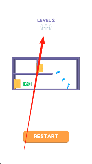 1、进入LEVEL2场景,观察蓝色小人与建筑布局,需规划路径,让小人避开障碍(如黄色方块),朝着逃生标识移动,通过调整场景元素(若有)或引导小人行动。