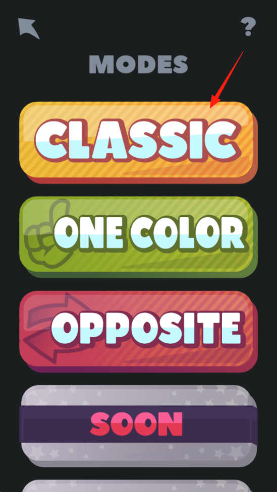 2、来到模式选择页,点击“CLASSIC”经典模式,不同模式(如“ONE COLOR”“OPPOSITE”)有独特规则,经典模式下,玩家将面对基础色彩捕捉任务。
