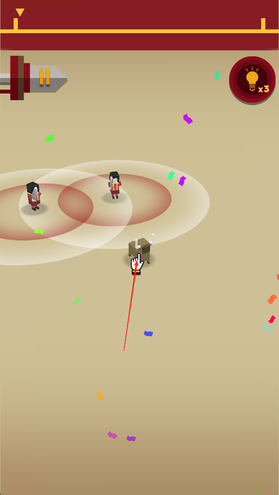 1、方向控制技巧:通过滑动屏幕精准控制公牛的移动与冲撞方向,提前预判目标的行动轨迹,调整角度发起攻击,能更高效地撞飞挑衅者,提升攻击成功率。