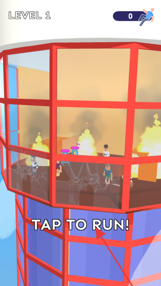 1、在【LEVEL1】火灾场景,点击【TAP TO RUN!】,操控角色逃离着火建筑。