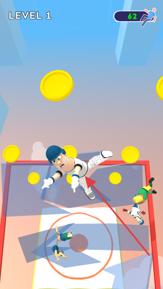 2、奔跑途中,收集金币,借助箭头指引方向,跨越障碍,避开或越过其他角色前进。