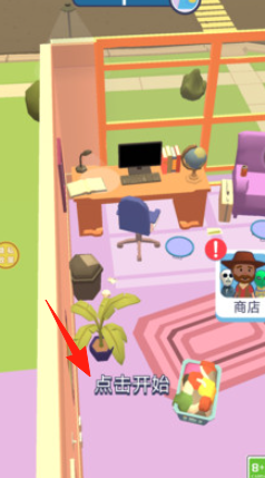 1、进入游戏后就会到开始界面,点击房间内“点击开始”按钮,进入躲猫猫玩法,准备隐藏寻找。