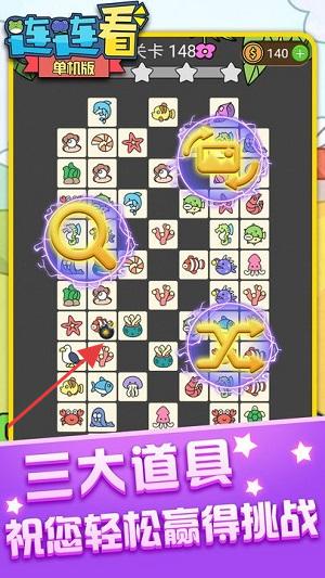 1、玩家需观察图案,找到相同且能通过折线连接(不超2个转弯)的图标,点击消除,合理用道具突破难点,在限时或步数内消除所有图标,体验经典连连看的策略消除乐趣。