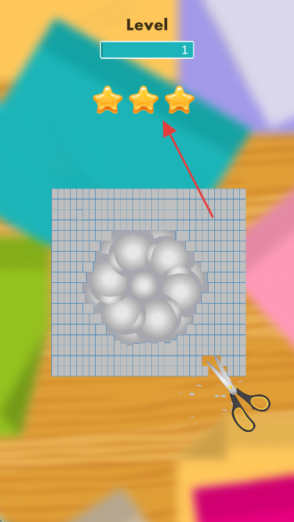 2、根据关卡提示,用剪刀剪出对应形状,上方星星表示可以失误的次数。