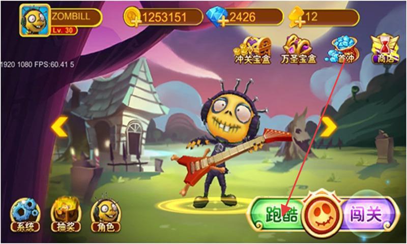 1、进游戏先在角色页熟悉资源(金币、钻石),选“ZOMBILL”,用金币升级,钻石留关键道具。