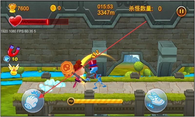 2、跑酷战斗时,紧盯距离、血量,遇怪快速点攻击按钮,用磁铁道具吸金币,angel保生存。