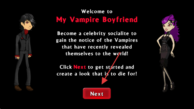 1、点击标题页【Next】,开启《My Vampire Boyfriend》游戏。