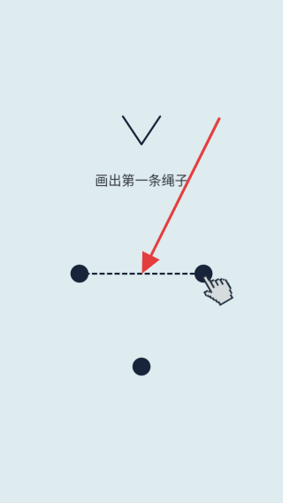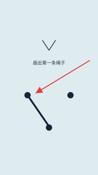 1、根据提示【画出第一条绳子】,用手指连接水平方向的两个黑点,绘制第一条绳子,完成基础操作。