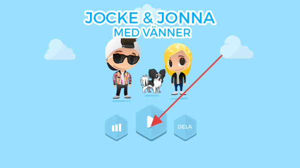 1、点击【播放】按钮(红色箭头指向的三角形图标),开始游戏,体验【JOCKE & JONNA MED VÄNNER】相关内容。