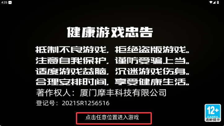 1、下载安装好游戏后打开,点击任意位置进入游戏。