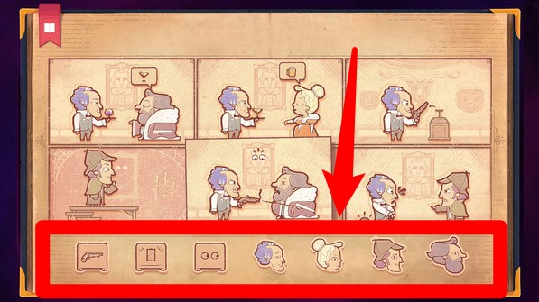 2、点击下方图示道具,拖动角色与物件图标,将其放入对应方格中。