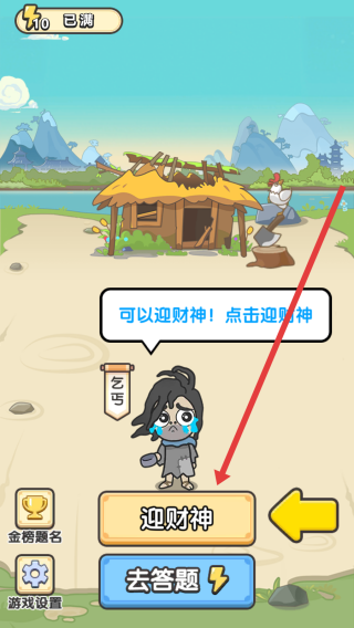 2、在主界面,点击“迎财神”按钮,触发财神互动,领取奖励,助力游戏进度,提升资源获取。