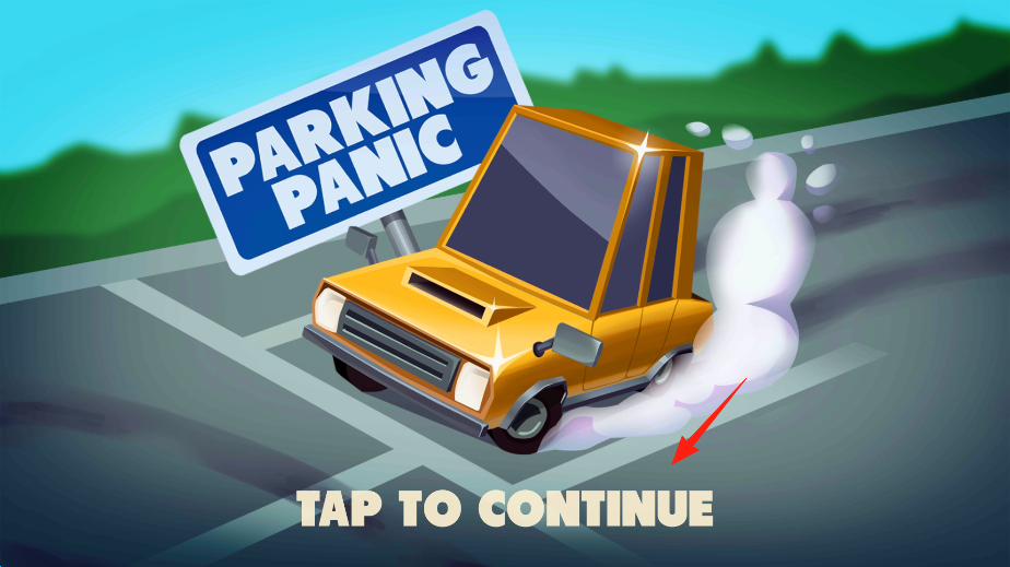 1、点击“TAP TO CONTINUE”开启停车挑战。画面呈现“PARKING PANIC”主题,黄色汽车是操控对象,通过点击进入关卡,准备在停车场场景中,应对停车难题。