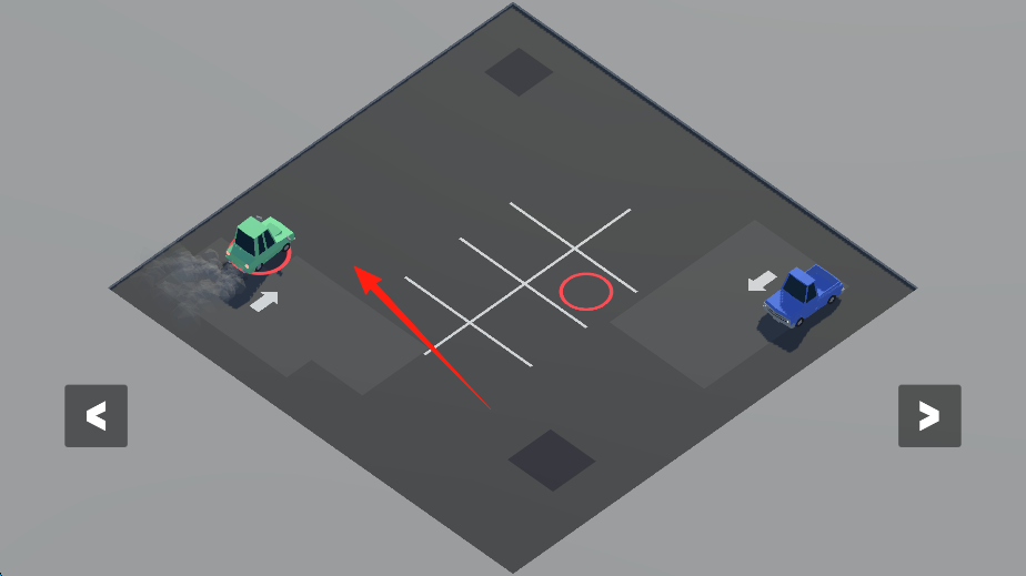 2、进入停车场场景,操控绿色汽车,规划行驶路线,避开蓝色汽车与红色禁行区域。通过滑动或点击控制移动,尝试将车停入目标位置,感受场景互动玩法。