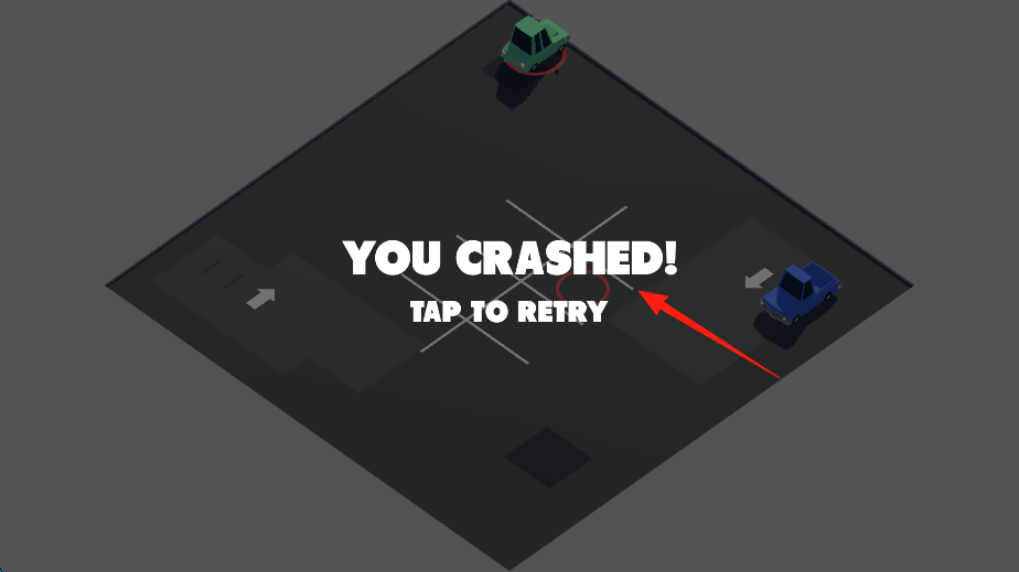 3、若停车失败,触发“YOU CRASHED!”界面,点击“TAP TO RETRY”重新挑战。借碰撞反馈机制,让玩家重新尝试停车,调整操作策略,感受游戏的挑战性与容错性。
