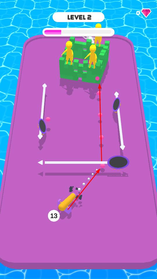 2、循环关卡限制资源:采用循环关卡模式,且炮弹(小球)数量受到限制,玩家需在有限次数内完成反弹任务,资源的限制迫使玩家谨慎规划每一次反弹,避免无效操作。
