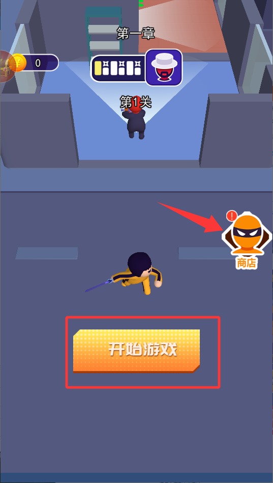 1、进入游戏后可在商店选购心仪装备,挑选完毕后点击开始按钮即可开启江湖历练之旅。