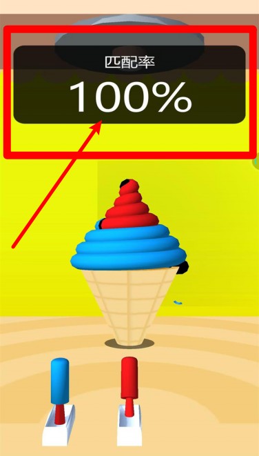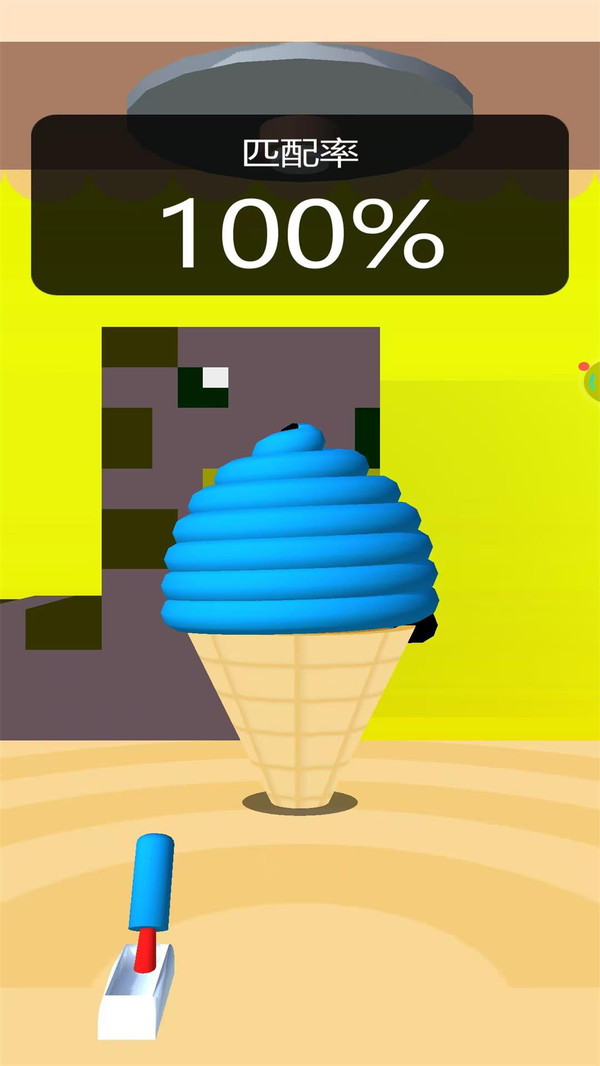 1.精准匹配挑战:画面中央显示出玩家制作出的冰淇淋与目标模型的匹配度,百分比越高说明造型越接近目标,可获得更高评价。