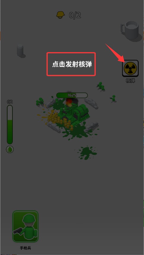3、当遇到大批敌人时点击右下角核弹按钮,可瞬间清屏消灭所有目标,但每次使用需要较长冷却时间。