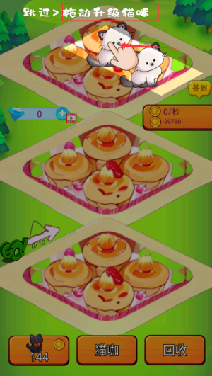 4、将紫色猫咪拖到跑道,开始自动赚取金币。