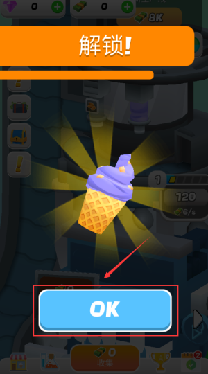 2、点击ok按钮,确认解锁紫色冰淇淋奖励。
