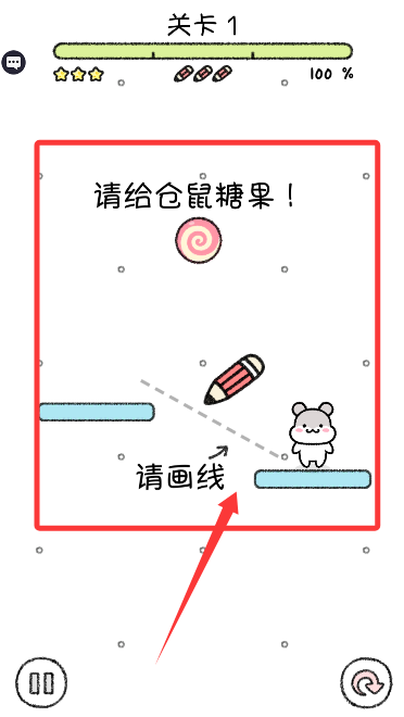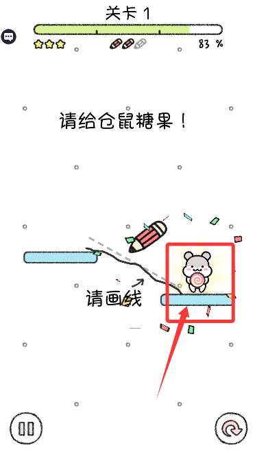 3、观察小仓鼠沿着轨迹移动,成功取得糖果完成当前任务。