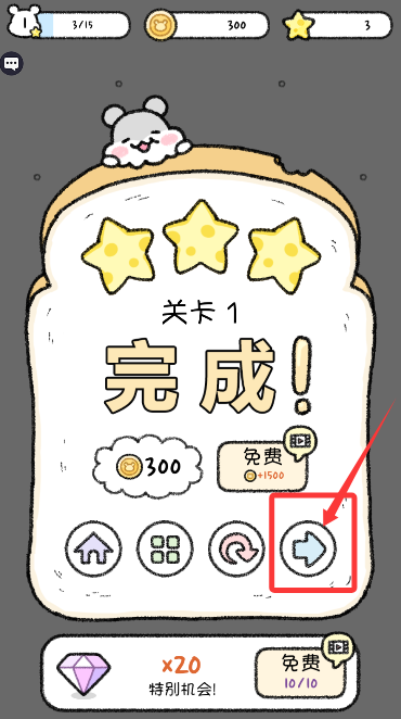 4、成功通过关卡挑战后,可以选择继续冒险或回到初始界面。