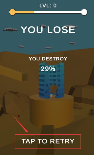 2、点击红色球体,瞄准撞击蓝楼制造破坏。